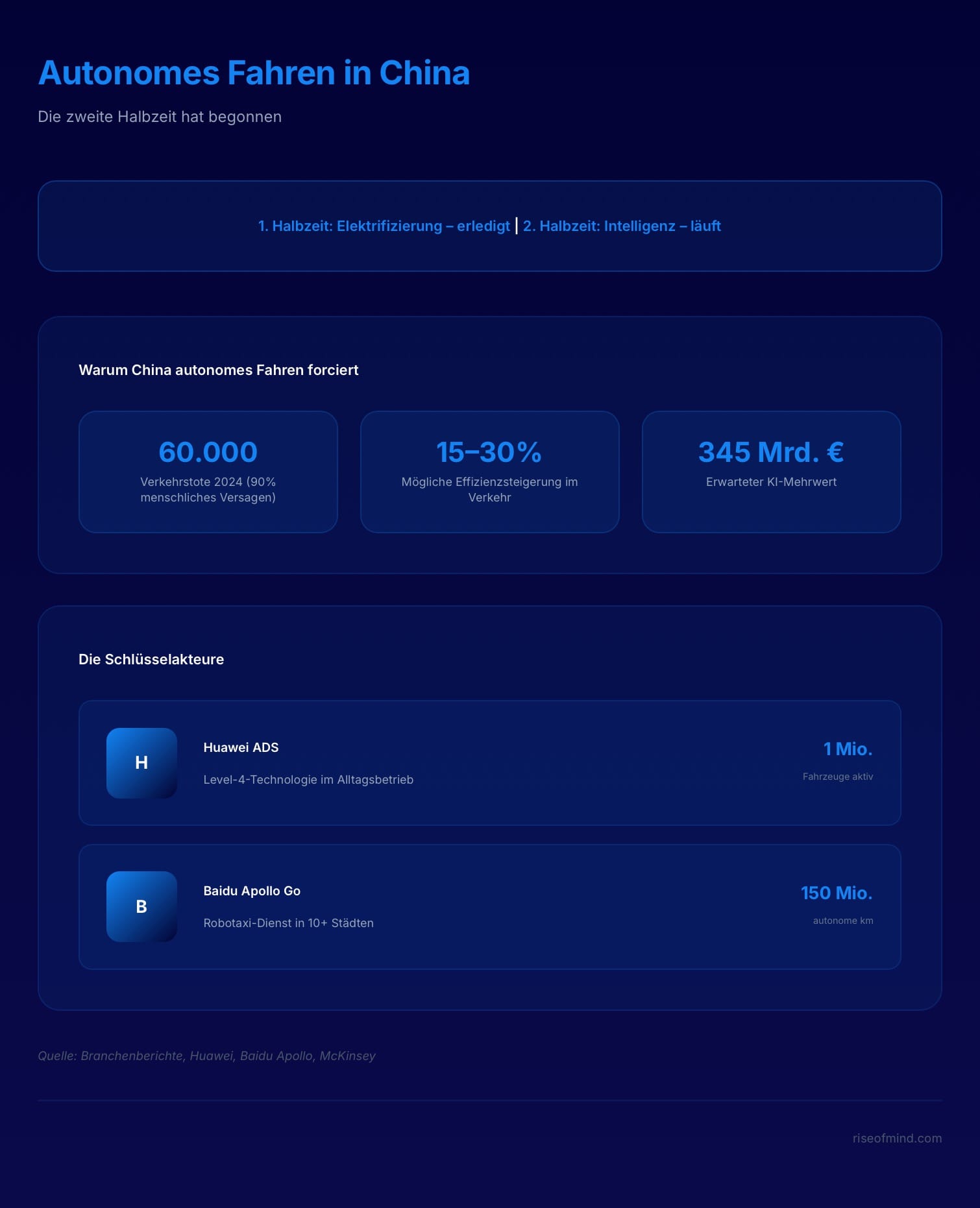 Ein Thema, das in China mit enormer Ernsthaftigkeit verfolgt wird, ist das autonome Fahren. Die Motivation dahinter ist nicht nur technologischer Ehrgeiz, sondern wirtschaftliche Notwendigkeit.